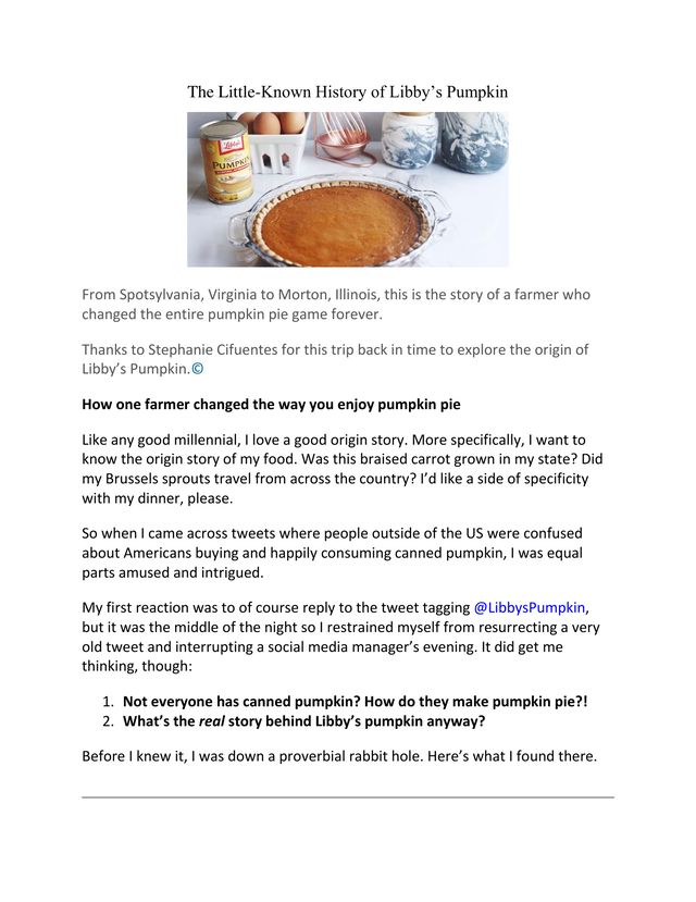 Read about the history of Libby's Pumpkin