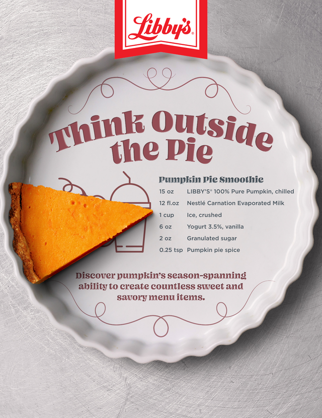 Libby's 100% Pure Pumpkin Toolkit Sweeten Your Profits with Desserts Easy-to-Make, Easy-to-Sell Desserts Five Tips for Customizing Premade Desserts Discover 10 Sales-Boosting Dessert Concepts Dessert Excitement: Upgrade the Favorites Offer More Chocolate! Your Guests Will Love You.