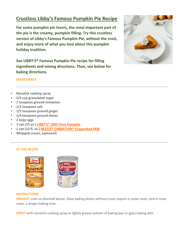 Recipes for Crustless Libby's Pumpkin Pie